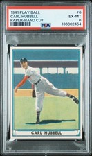 1941 PLAY BALL PAPER-HAND CUT #6 CARL HUBBELL PSA 6