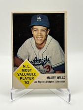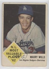 After four years in the Majors, Maury Wills finally had a baseball card printed by a major manufacturer and it came just in time to celebrate his MVP award with the Dodgers.